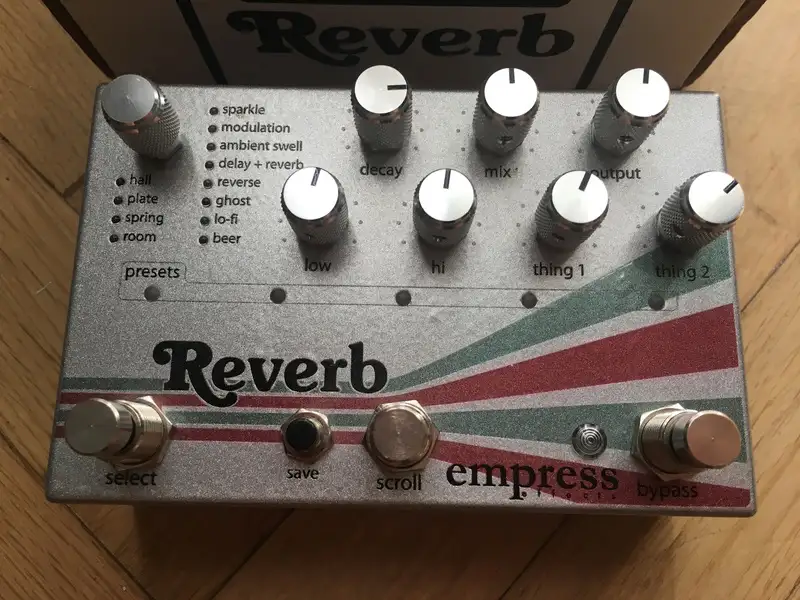 Az egyik legklasszabb studio minosegu reverb pedal formatumban. Szep, karcmentes allapot, dobozaval, leirasaval egyutt. Adok hozza egy Boss 9V/500mA tapot, ami boven fedezi a pedal energiafelvetelet. Csere hasonlo minosegu pedalra erdekelhet, Chase Bliss Mood, Thermae, Blooper erdekelhet.