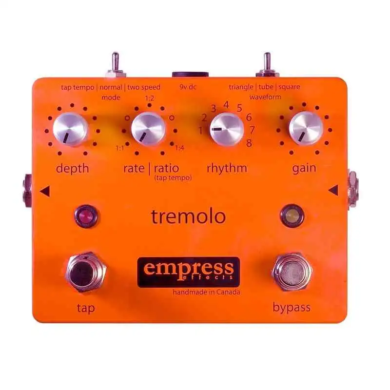 huendeskesEladó egy Empress Tremolo. Boutique kanadai pedál. Három állású wave form kapcsoló: asszimetrikus tremolo a 65 Fender Vibrolux alapján modelezve, a square wave egy erőteljesebb tremolo hang és a triangle wave, ami normál digitális tremolo. Van rajta Tap tempó, hangerő poti és különböző alap ritmusok is kiválaszthatóak. Tökéletes, karcmentes állapotú. Csere és beszámítás nem lehetséges.