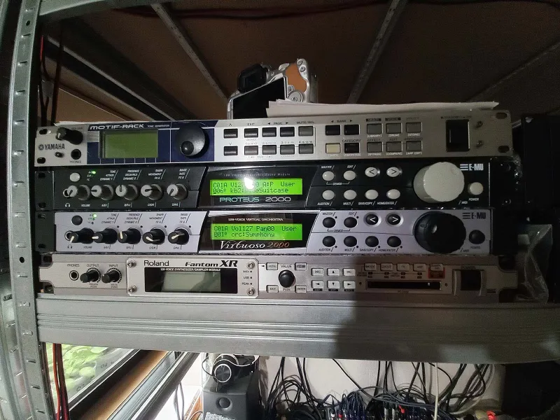The Proteus 2000 is the most powerful and versatile sound module created by E-MU, kicking off the new Proteus line. It offers you the unique combination of 128 voice polyphony, an ultra-fast 32-bit processor, extensive real-time controls, 6 analog outputs plus stereo S/PDIF digital out, and built-in dual 24-bit effects. It shipped with the 32MB Composer ROM, the best general purpose soundset in the series, with a little bit of everything.