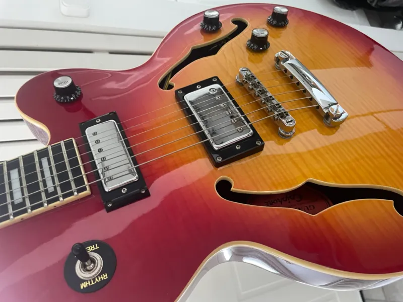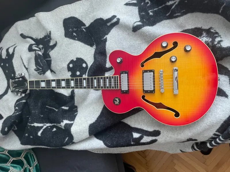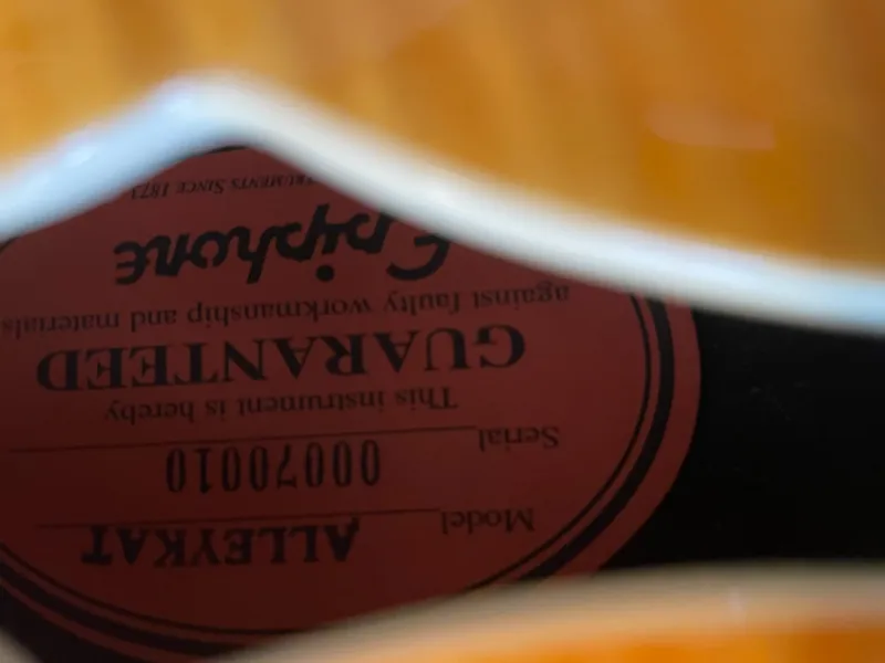 Gyönyörű állapotú, alig használt Epiphone Alleykat Single Cutaway, Év: 2000, Ország: Korea (nem Kína). Bundok, nyak be lettek állítva a Vintage 52-ben, azóta nem lett használva.Kapcsolódó hangszerteszt