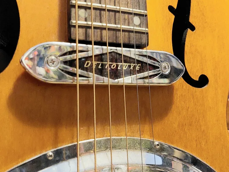 Gretsch deltolux hangszedo+egy resonator hangszedo a testben. Nagyon stabil gitár bármit csinalsz vele tartja a hangolást.Kapcsolódó hangszerteszt