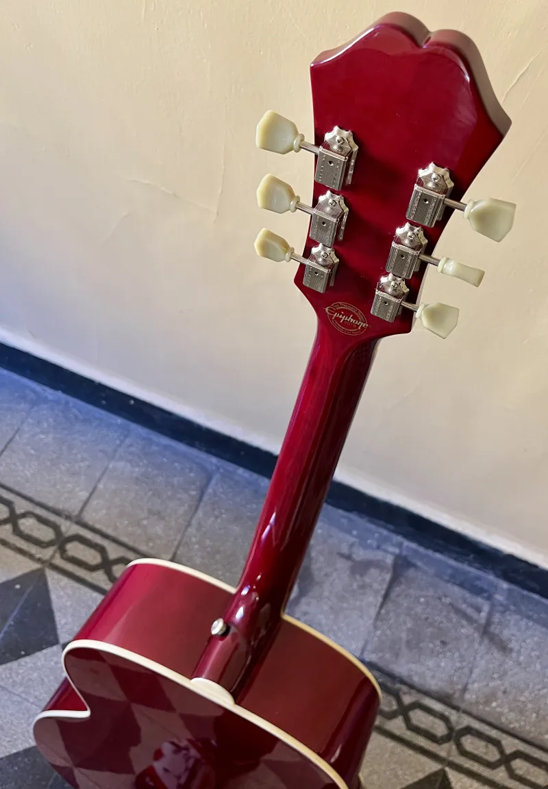 A gitár Wine Red (bordó) színben pompázik, elegáns fehér szegéllyel, és lenyűgözően telt, gazdag hangzással.