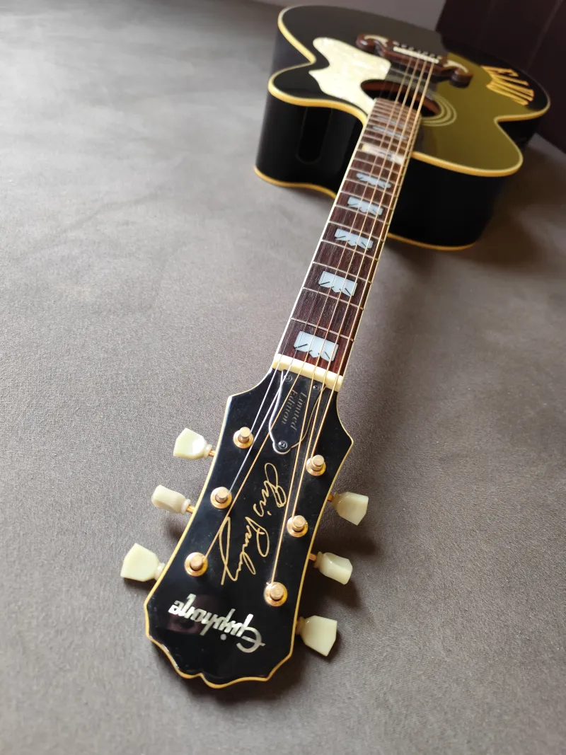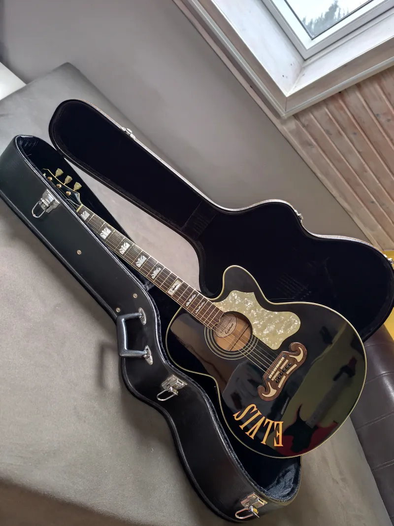 Eladó egy gyönyörű állapotú 1996-os Epiphone EJ-200, a márka legendás jumbo akusztikus modellje. Ritkább, korai kiadás, kiváló hanggal és ikonikus megjelenéssel.🔸 Nagyon jó állapot, tiszta fedlap, egyenes nyak