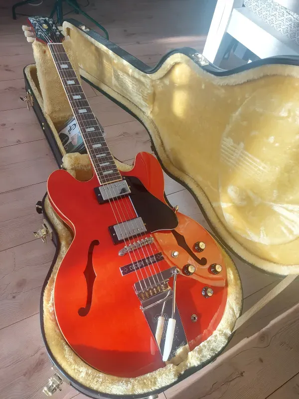 Eladó lenne egy 2022-es limitált kiadású Epiphone Joe Bonamassa 1962 ES-335 gitár gyári tokjában minden case candy-vel és certificate-el. Újonnan már nem beszerezhető. A koptatón és környékén látható minimális használat nyoma egyébként leütés mentes, gyári állapotban van a hangszer.Budapesten megtekinthető megbeszélés szerint, nem szívesen postáznám. Cserebere, alku köszönöm nem. Emailben tudok küldeni nagyobb felbontású képeket, sajnos az új fórum nagyon levágja.