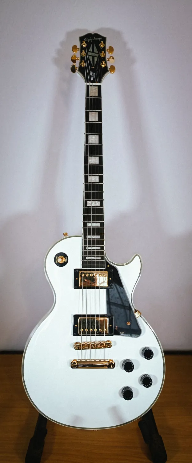 Eladó Epiphone Les Paul Custom elektromos gitár Alpine White színben. A gitár makulátlan állapotban van, szobában használt, tökèletesen működik.Jár mellè egy Epiphone puhatok, igèny esetèn tudok adni hozzá egy Gator Les Paul kemènytokot amit az ár nem tartalmaz.