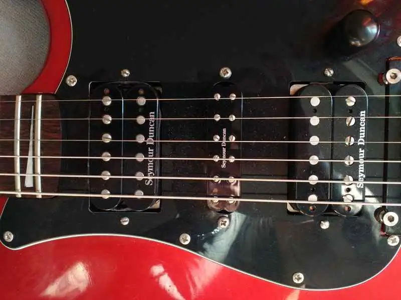 huendeskesEladóvá vált egy Epiphone By Gibson S500 típusu elektromos szólógitár.1986-87-n gyárthatták.Eredeti festés apróbb karcolásokkal.Új tremolo,új bundozás,hangszadő cserélve.A hídnál egy Seymour Duncan Sh4 ami felezhető,középen egy Seymour Duncan SL-59 mini humbuker és a nyaknál egy Seymour Duncan SH2 hangszedő.Eredeti hangszedők is megvannak hozzá.A gitár nagyon jó állapotban van a korához képest és nagyon dögösen szól ezekkel a hangszedőkkel.