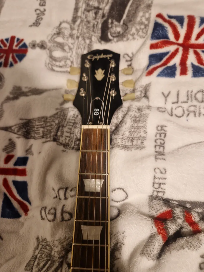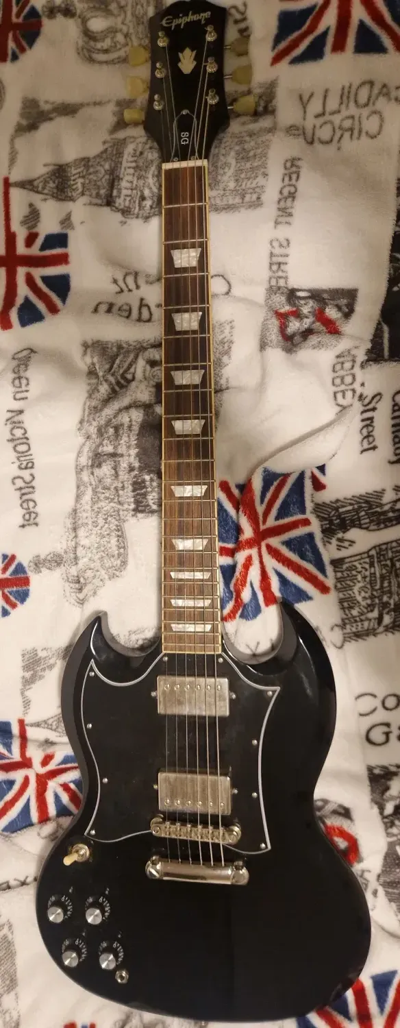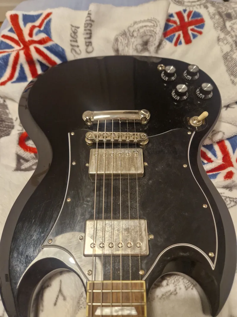Elado 2023as Epiphone SG Standard Ebony. Funkcionalisan tokeletes, de az aktiv hasznalatnak koszonhetoen sok kis felszini karcolas talalhato rajta.Ha esetleg tovabbi kepekre lenne szukseg akkor szivesen kuldok.