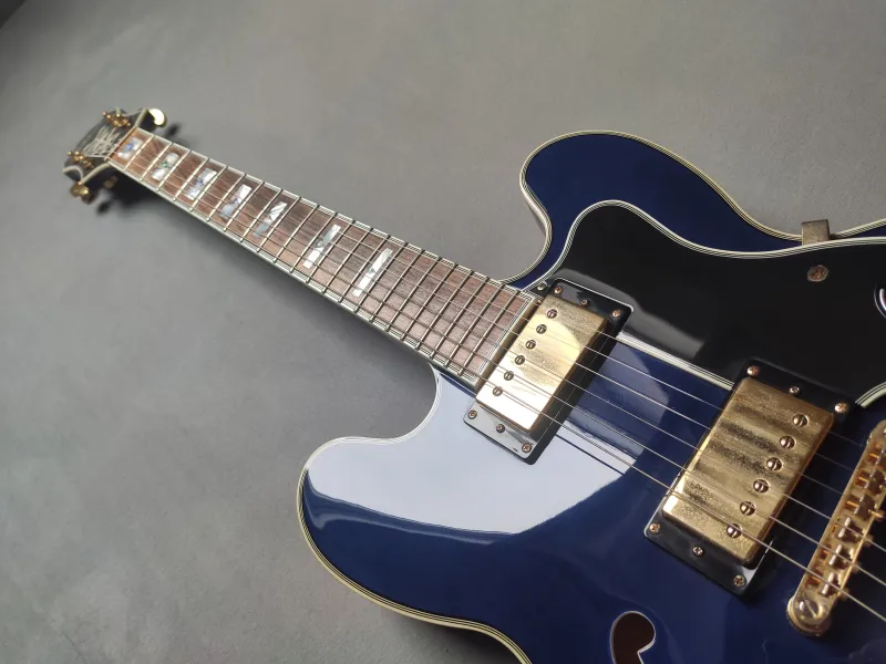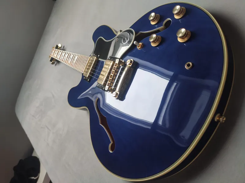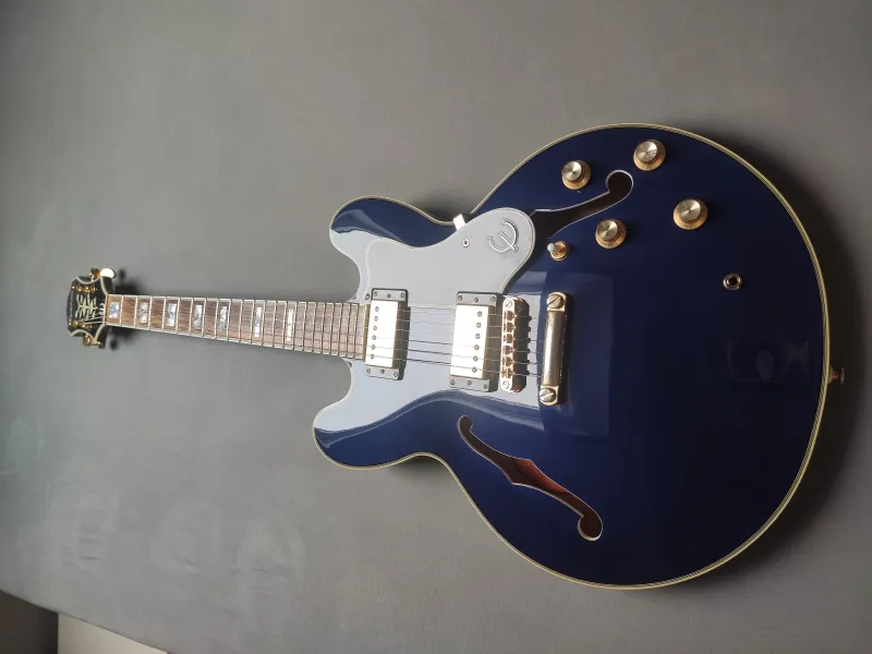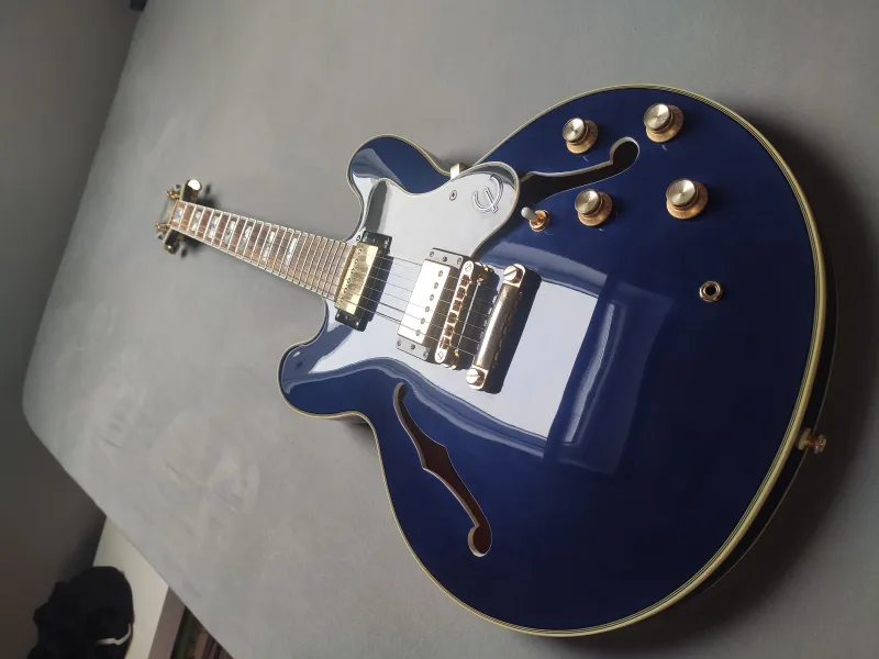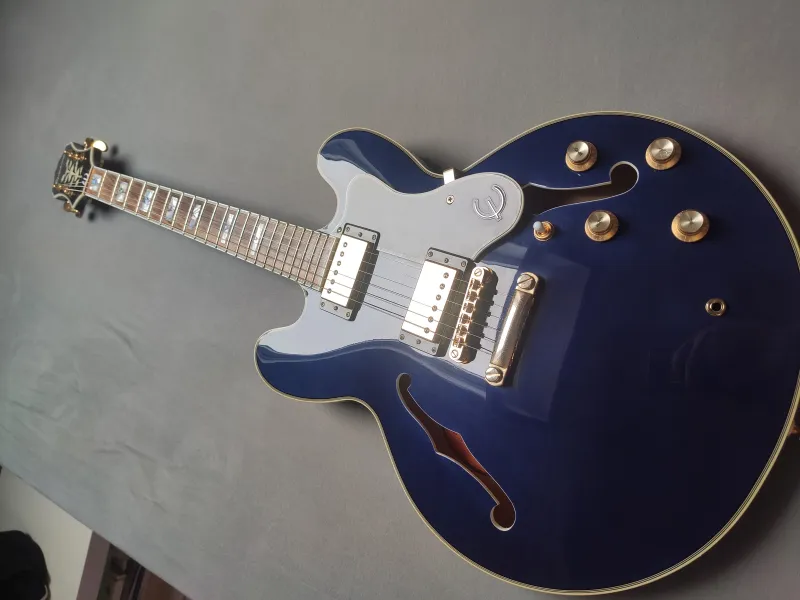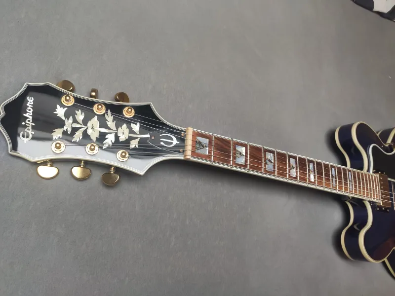 Eladó egy Epiphone Sheraton-II Pro félakusztikus jazz gitár Midnight Blue színben.