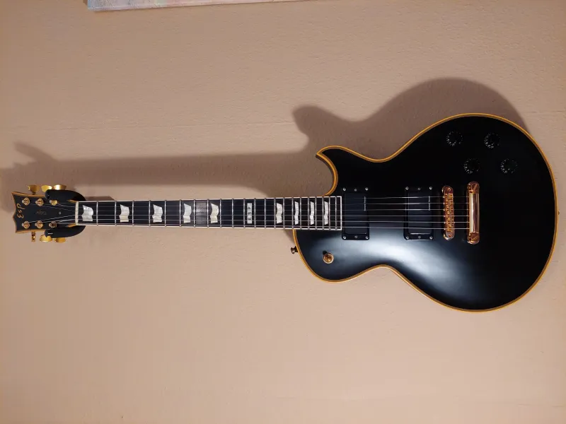 Minőségi faanyagok: mahagóni test és nyak, jávor toppal. Sperzel locking kulcsokkal és Seymour Duncan AHB-1 Blackouts szettel van szerelve a gitár.