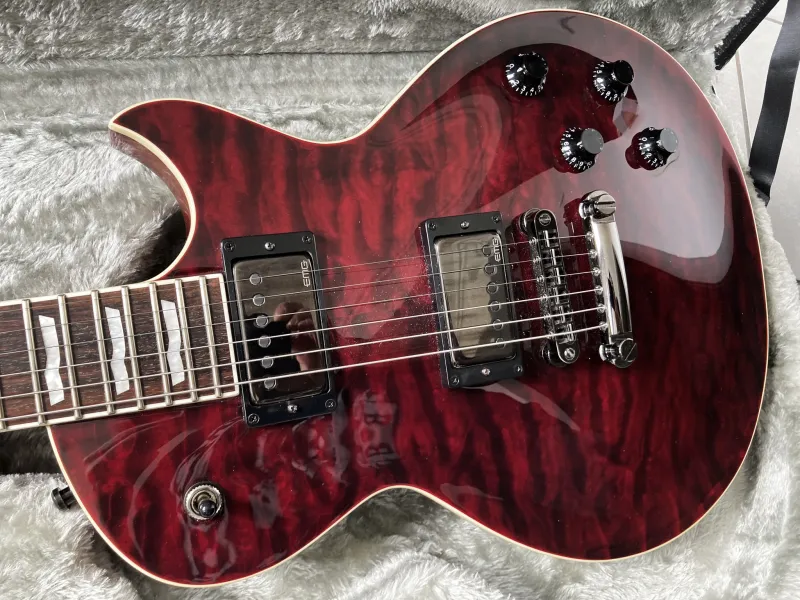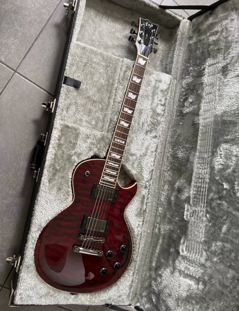 Eladó egy gyönyörű, újszerű, karcmentes állapotban lévő ESP Eclipse II See Thru Black Cherry elektromos gitár. gyári kemény tokjával.