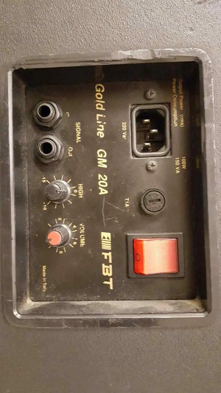 FBT Gold Line szinpadi aktív monitor 100/150W szép állapotban hangerő,hangszin, 2x6,3 inp.továbbfüzhető,fullvédelem zárlat,koppanás,hőmegfutás ,túlvezérlés.Eredeti Hangszórókkal.