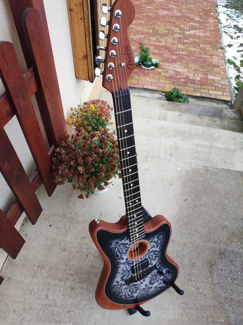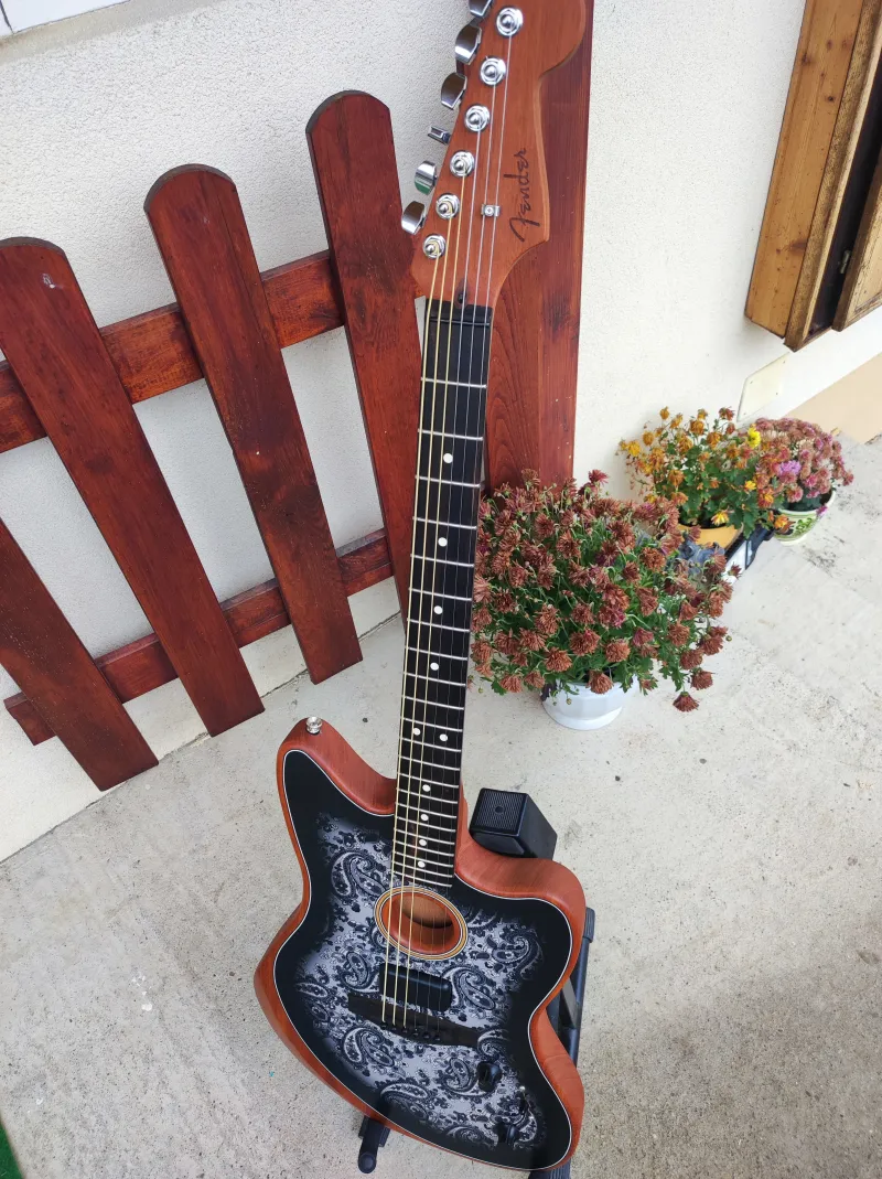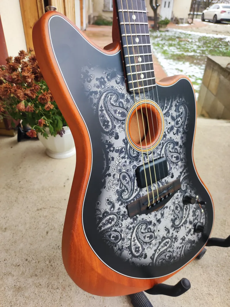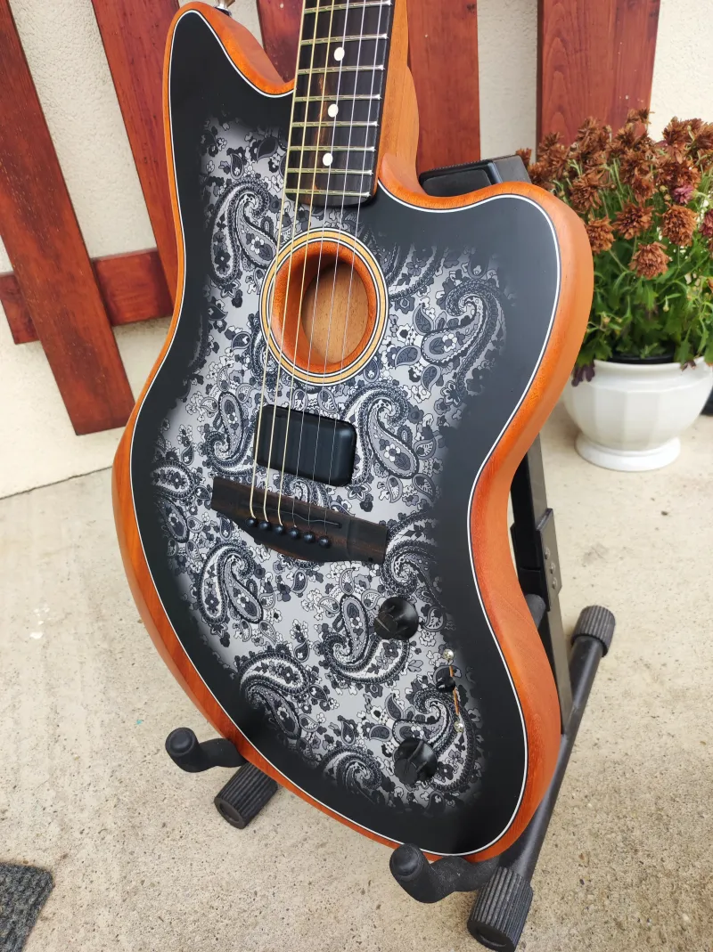 Fender American Acoustasonic® Jazzmaster®, Black Paisley, Ebony Fingerboard- Újszerű, karcmentes állapot