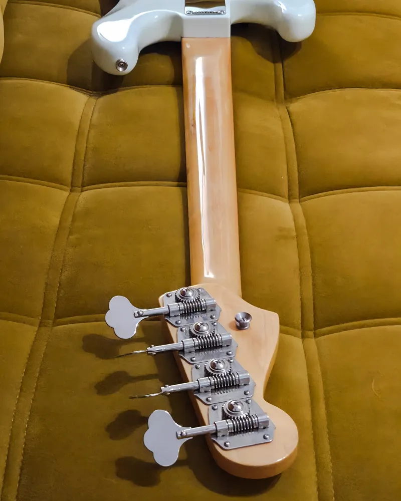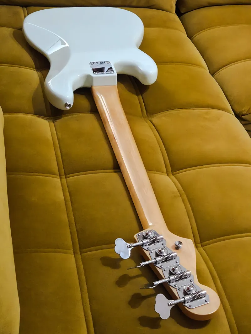 Az Olympic White nitro lak enyhén és természetesen kezd öregedni, ami finom vintage karaktert ad a hangszernek.