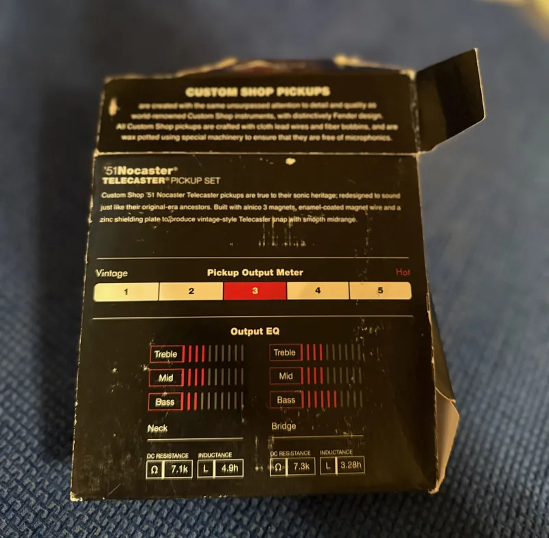 Eladó ez a custom shop hangszedő szett. Tökéletes vintage hang, nekem a legjobban működő fender hangszedő szett,mert a hídi hangszedő nem annyira éles,magas mint a többi fender. Dobozával(a papírja elszakadt). A nyaki kupakja bemattult az évek során,akit zavar,visszapolírozhatja,nekem így sokkal jobban tetszett :)Posta oké,csere most nem.