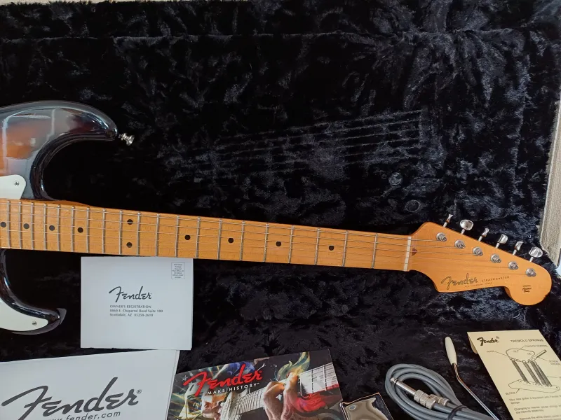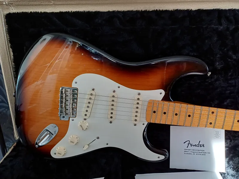 For sale Fender Eric Johnson Stratocaster 2TS, including hardcase and case candies.Szállítás