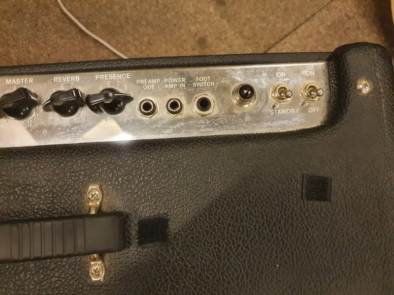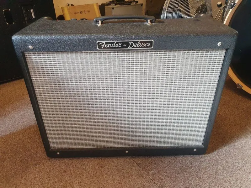 Fender Hot Rod Deluxe 40W csöves erősítő. Megkímélt állapotban, huzattal, kétgombos (drive, more drive) lábkapcsolóval.A rugós zengetője nem működik, valószínűleg az egyik csatlakozót kell rajta kicserélni.