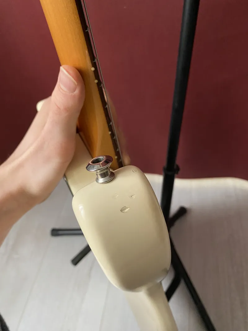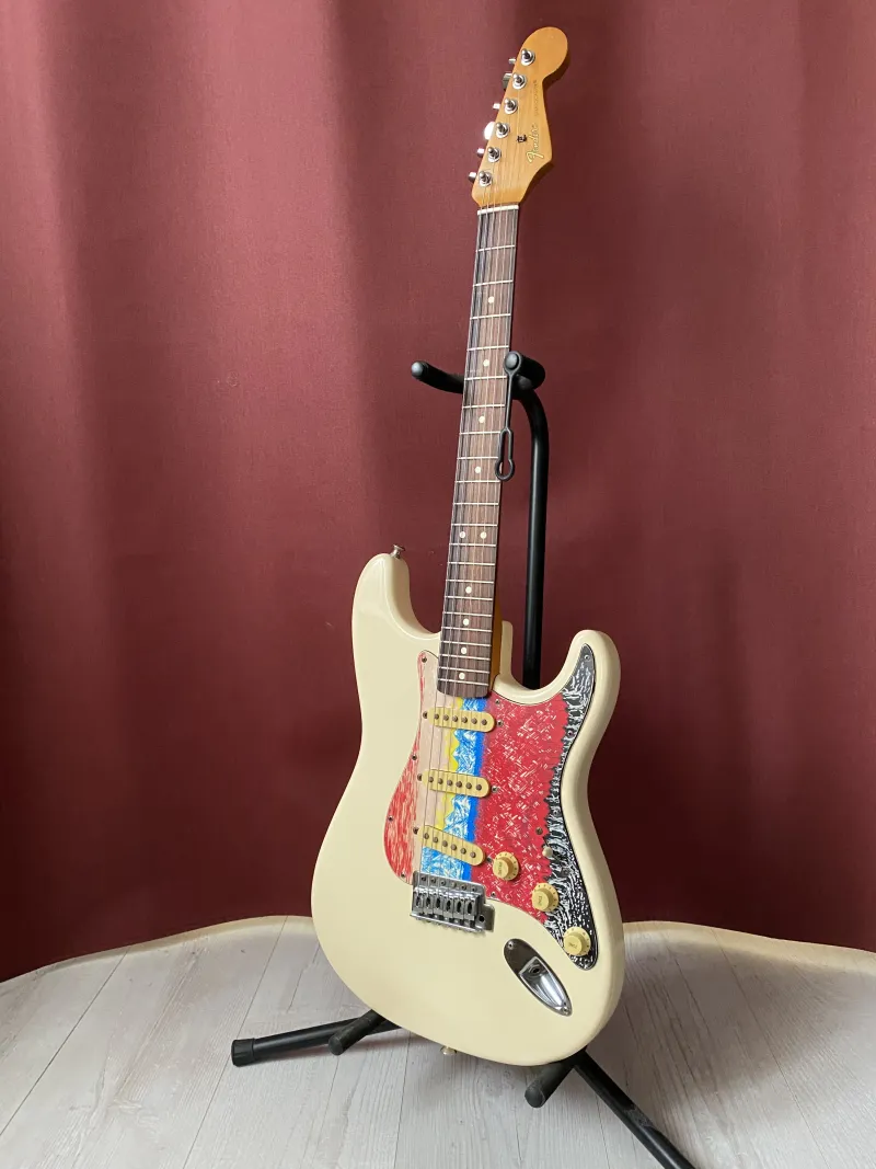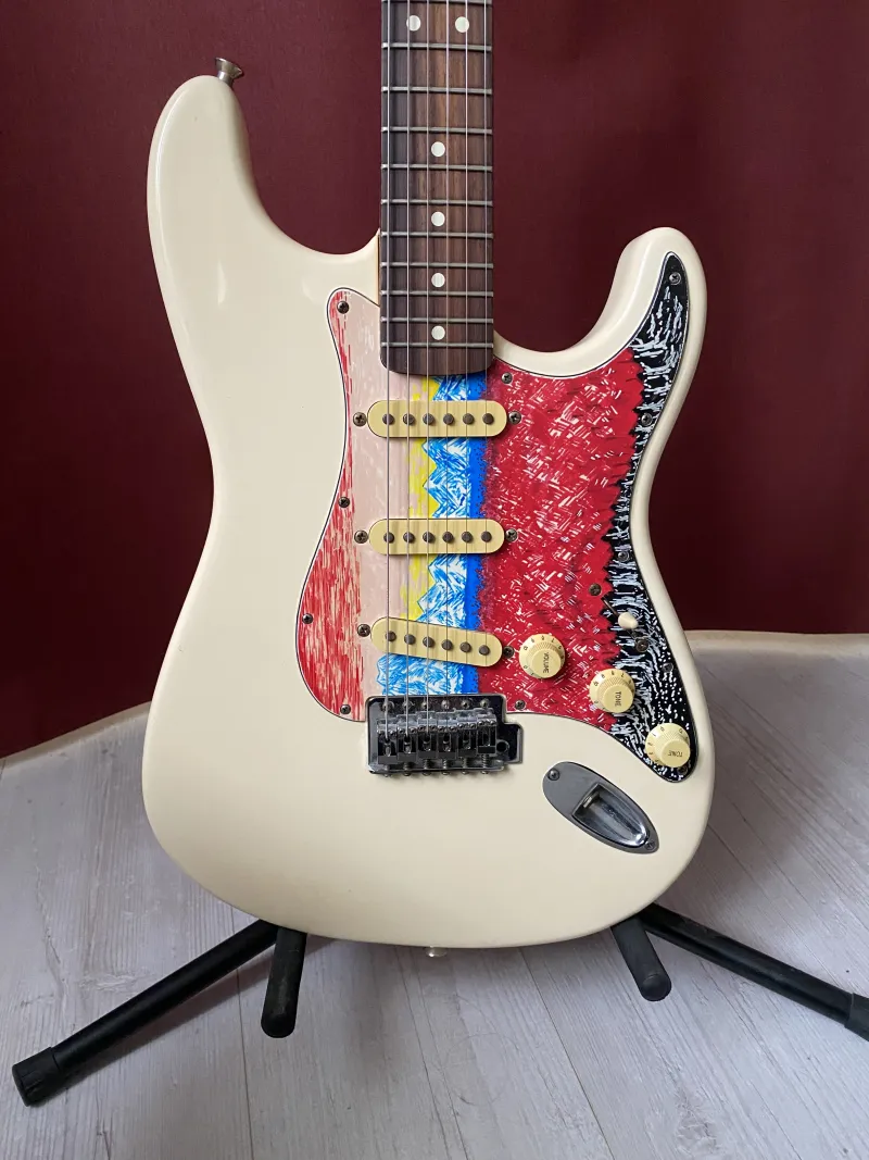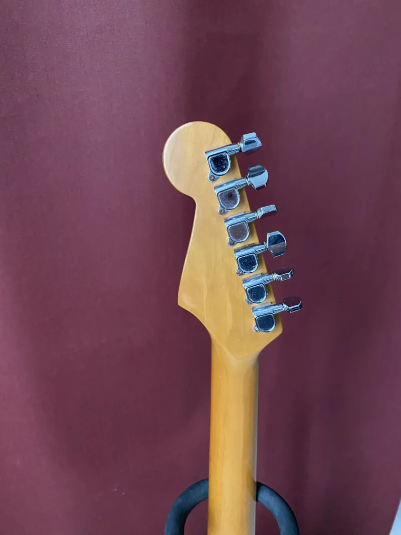 Eladó szép állapotú 1987-es Japán Fender Stratocaster gitár. Minden része eredeti. Bundok kitűnő állapotban vannak. A gitáron egy egyedi, festett koptató található.Csere érdekel p90 és/vagy üreges testű gitárra.
