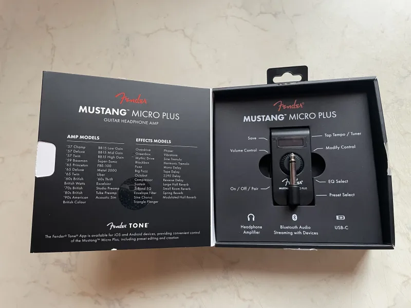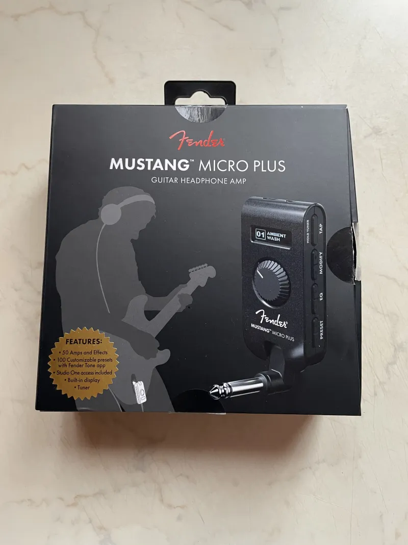 Eladó egyszer használt Fender Mustang Micro Plus itár/basszusgitár fejhallgató erősítő és multieffektA Fender Mustang Micro Plus fejhallgató erősítő 25 erősítővel és 25 effekttel egy tökéletes személyi gitárerősítő. A Micro Plus 100 szerkeszthető előre beállított bővítőhelyet tartalmaz Fender Tone App támogatással, integrált hangolóval és kijelzővel.
