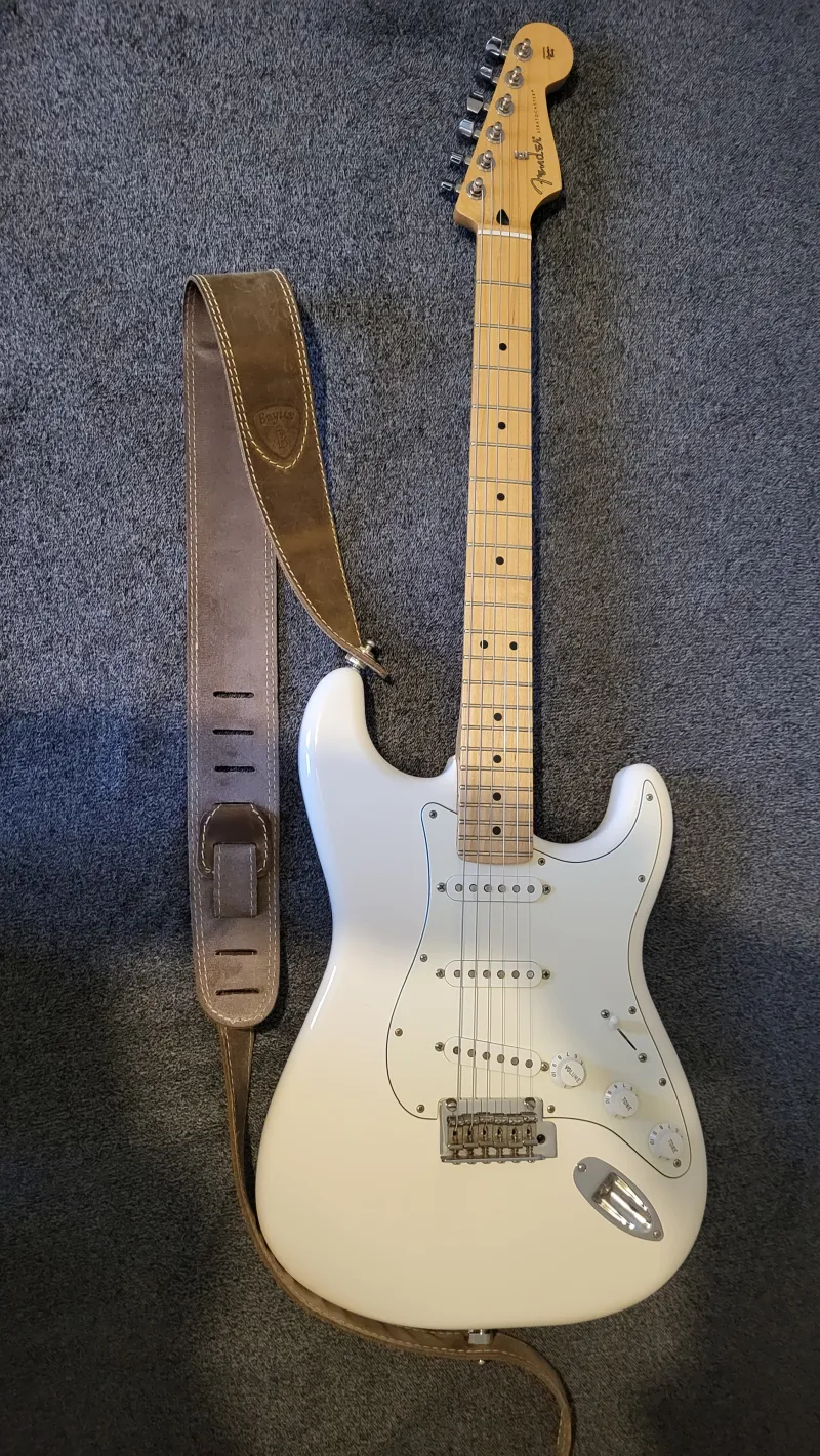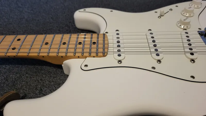 Eladó egy Fender player Stratocaster 60s Nokkel pickup szettel. Két napos Elixir 10-46 nanoweb húrkészlettel, frissen beállítva. A gitár nem igényel beállítást, a tremolo jelenleg fix, de elég könnyedén lehet egy `lebegős` beállításra állítani, igény esetén ebben segítek. Szemöldök gyakorlatilag tökéletesre bereszelve, anno Kovács Zolika csinálta a setupot. Elsősorban annak ajánlom, aki classic strat SSS hangot keres, elképesztő dinamikatartományal, kerek öblös érthető mélyekkel.A potik nem AB kapcsolók, a teljes tartományban lehet ezerféle hidegrázós hangot kicsavarni belőle. (Hídi pickuphoz tartozik tone poti) HSS, HH gitárra van szükségem, és nincs szívem szétbarmolni egy ilyen csodás hangszert. Kipróbálni időszakosan Budapesten lehet, de ebben megbeszélés szerint rugalmas szoktam lenni. Tweed tok, Bayus pánt- strap lock -al adom.