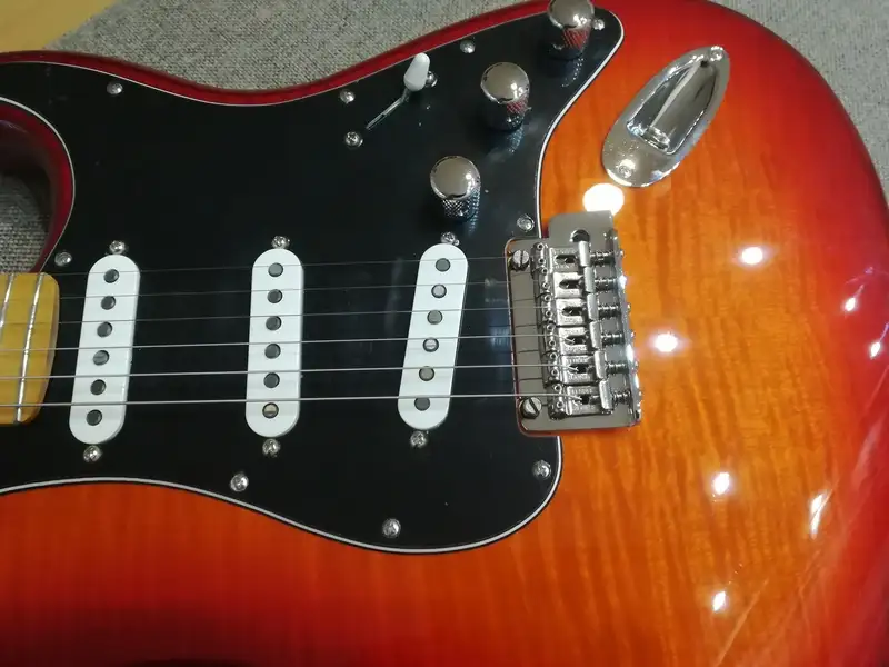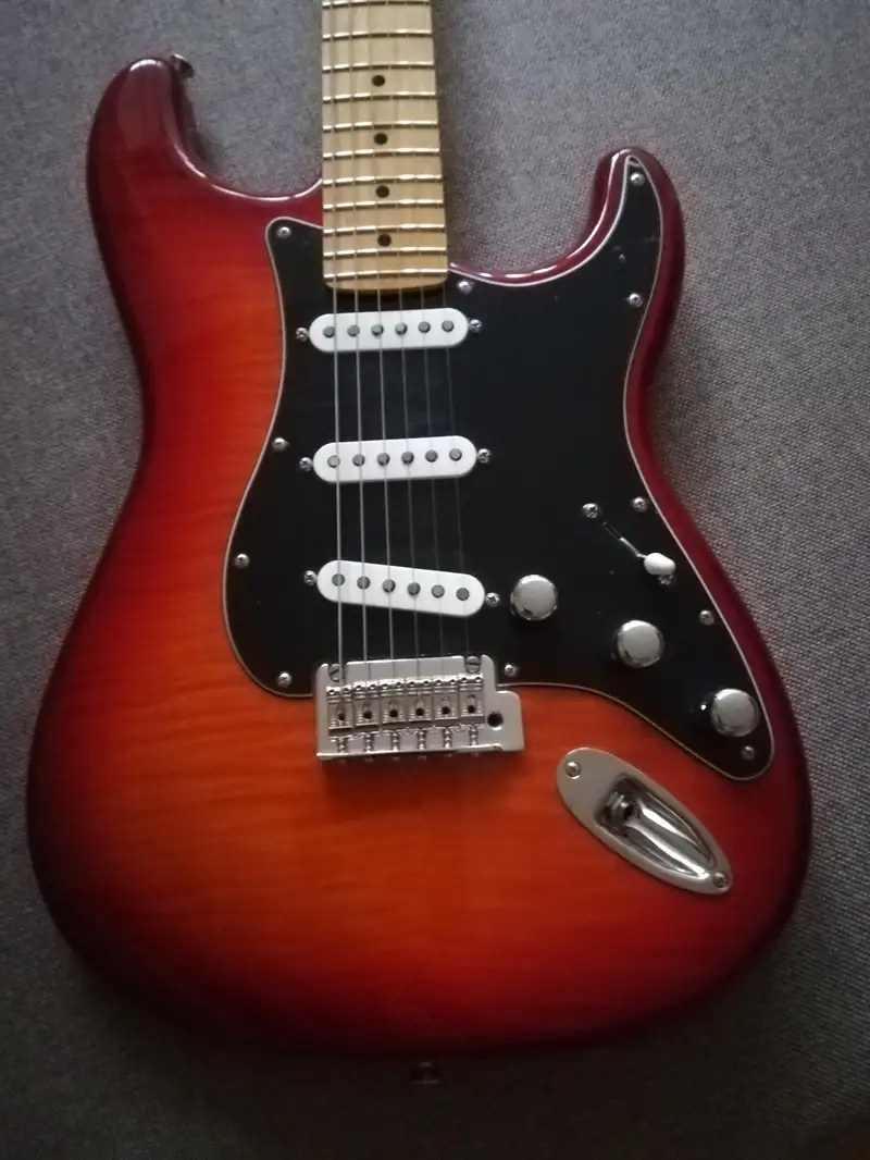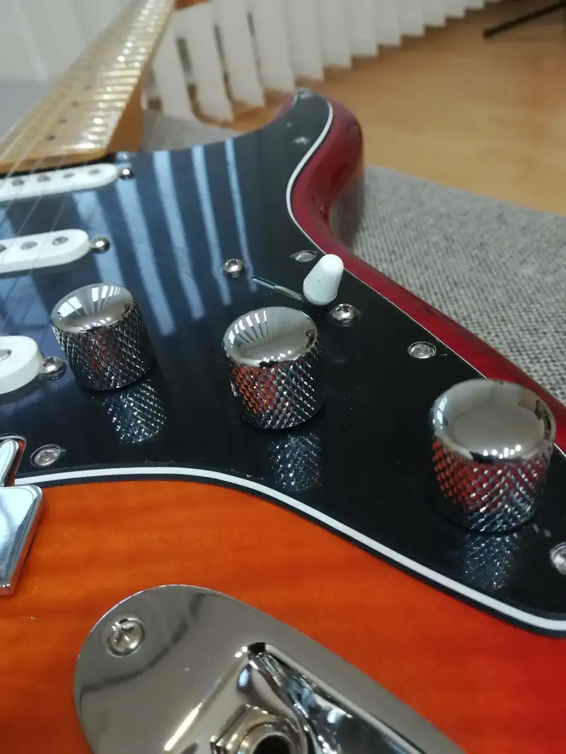 Eladó gyűjteménybe vásárolt Fender Stratocaster.Teljesen új állapotban, karc-, és sérülésmentes, a koptatón gyári fólia. Potik recézett krómra cserélve még az üzletben. Az eredeti műanyag pótméter sapkákat nem kaptam meg.