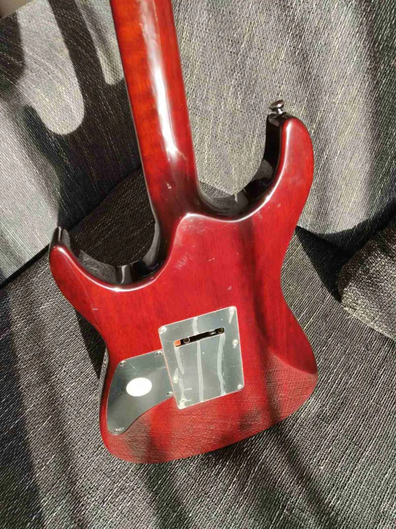 Jelenleg a tremolo fixálva van, a korábbi hirdetésben van róla kép, de egyszerűen működésbe hozható, a kar megvan hozzá.