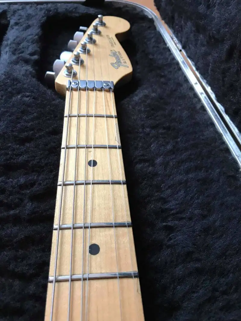 A hangszer tökéletes állapotban van, budjai eredetiek és kopásmentesek! Új 10-es húrok vannak rajta és be is van állítva. Az eredeti tremolókar jár hozzá. A gyári tokja jár hozzá, ami szuper állapotban van. Minden csatt működik.