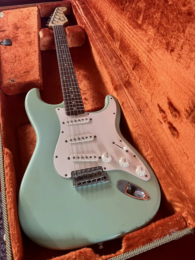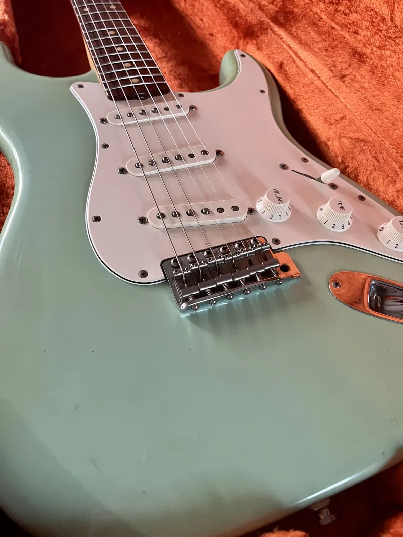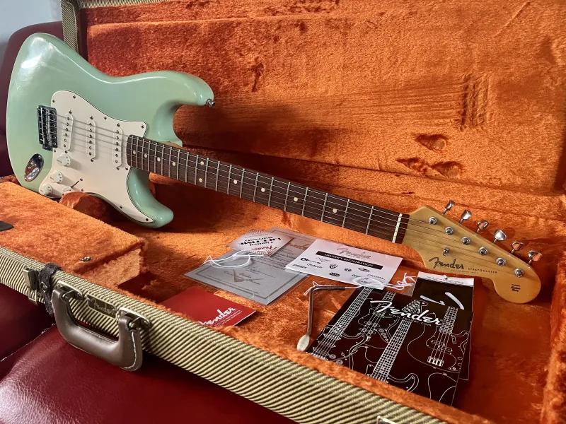 2001(!) es gyönyörü Daphne blue Fender Stratocaster CS minden papírjával , tokjával eladó, brutál hang!