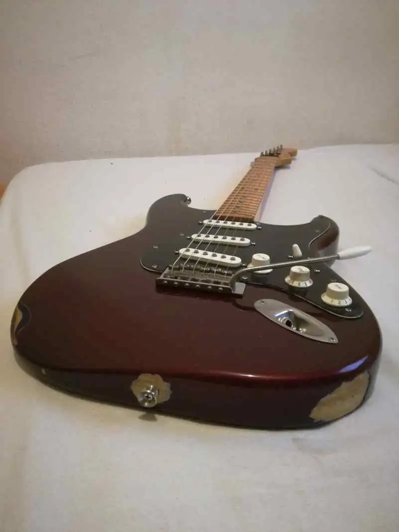 huendeskesEladó egy 2000-es gyártású mexikói strató. Az elődöm a hangszert elkezdte relikelni, amit valami okán félbe hagyott. Ami nem túl szerencsés, de én tudtam vele együtt élni. A képeken látszik. American standard hangoló kulcsok kerültek rá, valamint egy Callaham Guitars bridge, és egy Corona california neckplate. A többi alkotója eredeti.