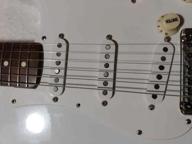 Floyd Rose II. tremoló. Fender Custom Shop Texas Special hangszedőkkel (Stevie Ray Voughan gitárok ezzel a szettel szerelve). Fender hangoló kulcsok.
