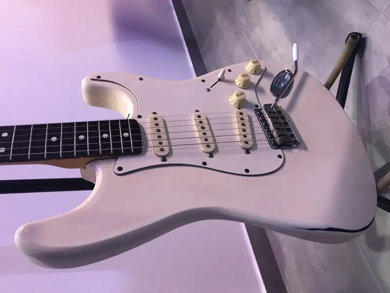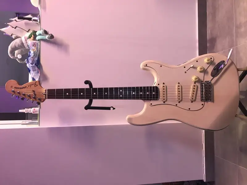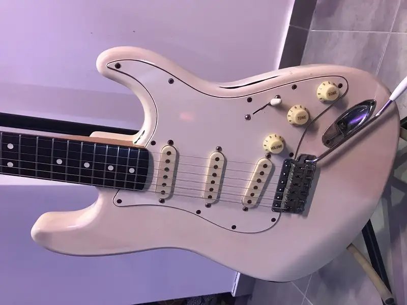 Sziasztok, nem minden áron de eladó épített Fender Stratocasterem, első szériás mexikói Fender test, 70-es mexikói Classic Fender nyak, TEX-MEX hangszedők.A nyakon a kulcsok gyáriak, az elektronika és a tremoló is Fender.Előző tulaja relicelte a gitárt, hozzám már így került, új Ernie Ball 10-es húrokkal.A hangszer szépen be van már játszva.A videókon a gitár hallható