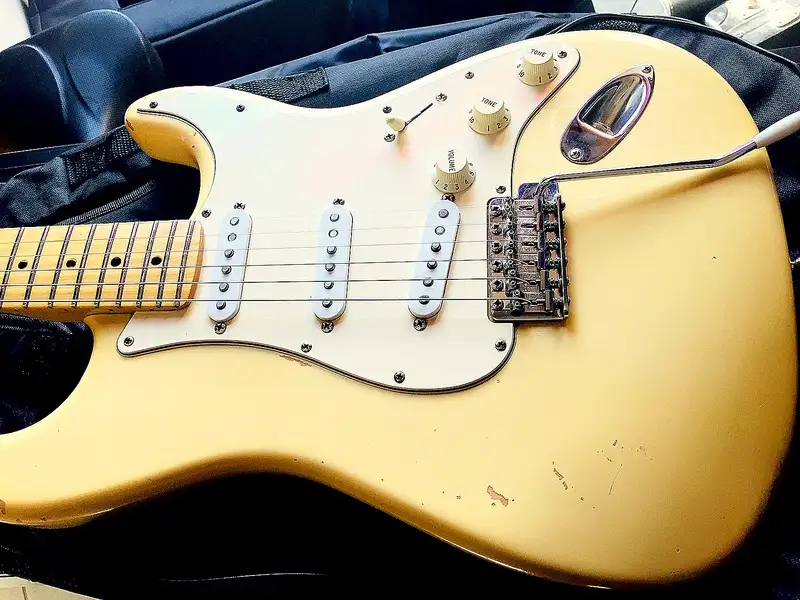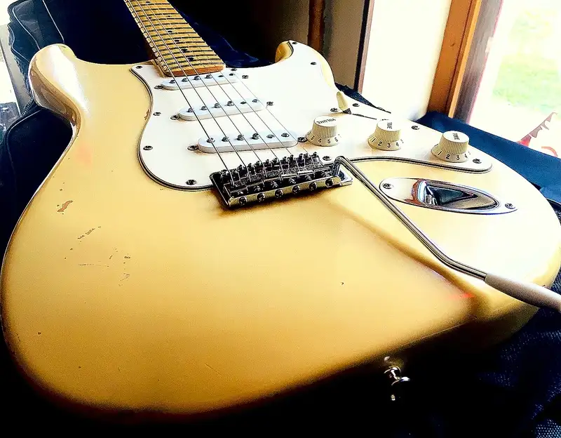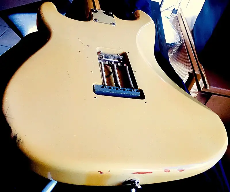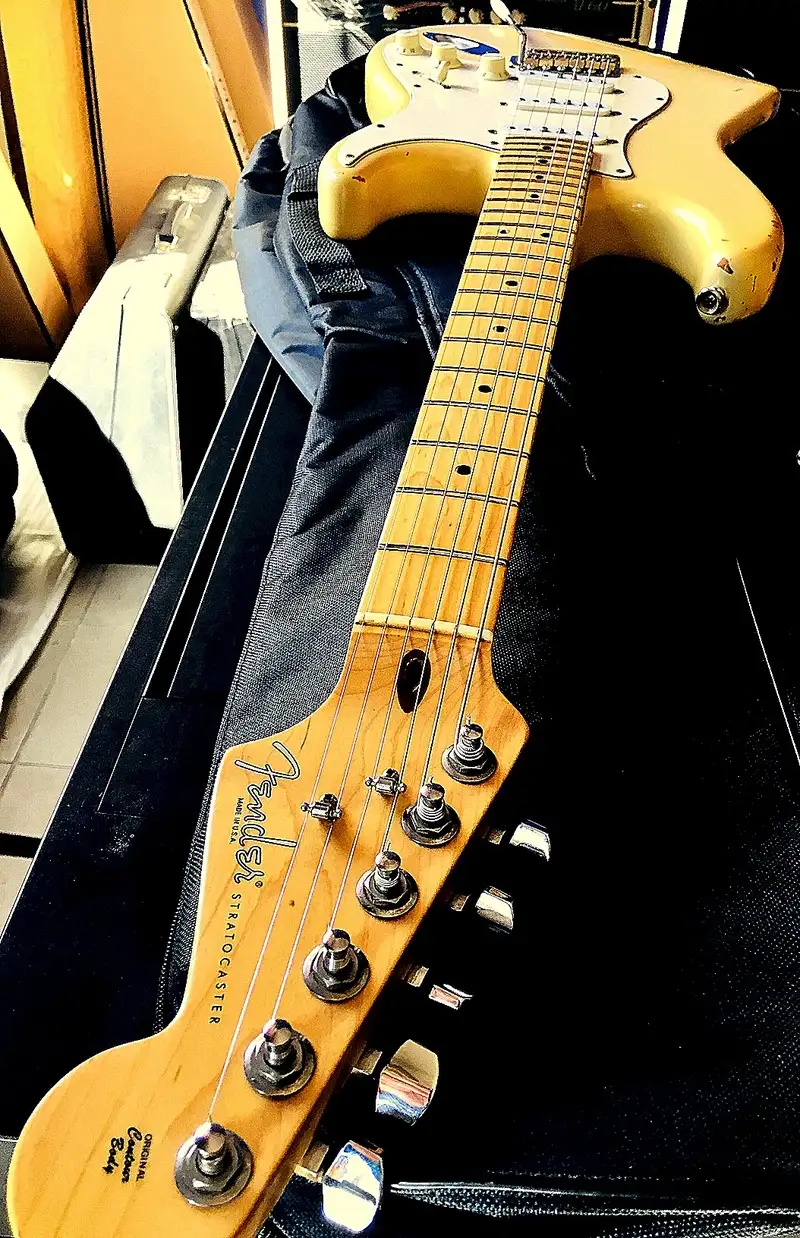 Fender Stratocaster 2005Fender Custom Shop hangszedőkkel (`60 Fat) szerelve, Honey Blond szín, természetes enyhe relic,
