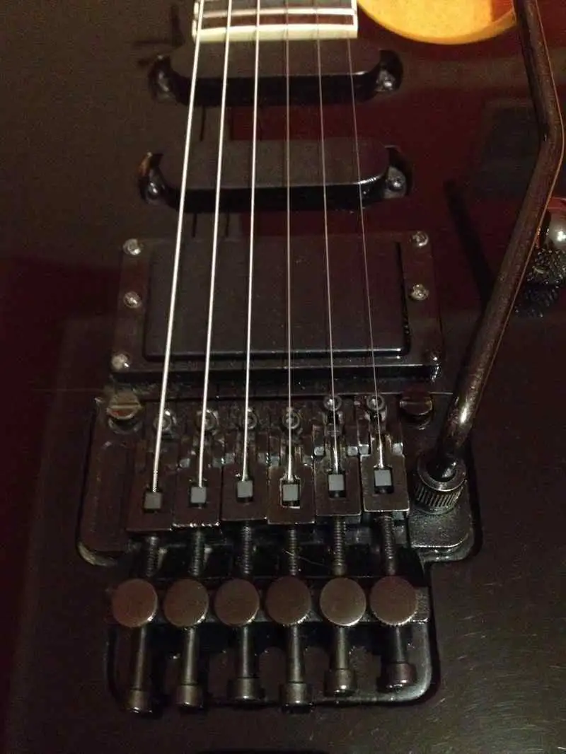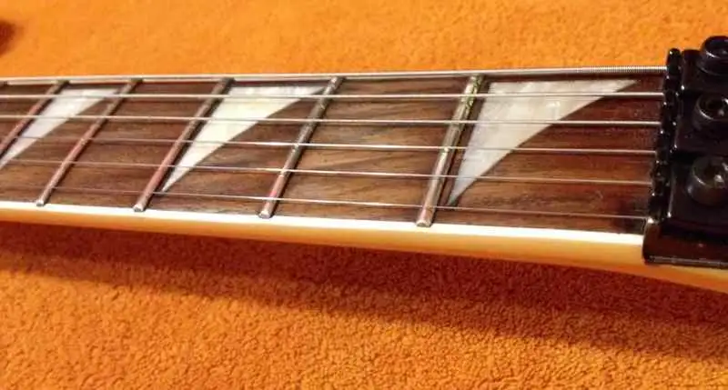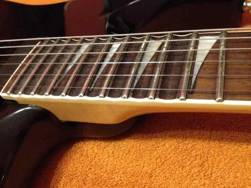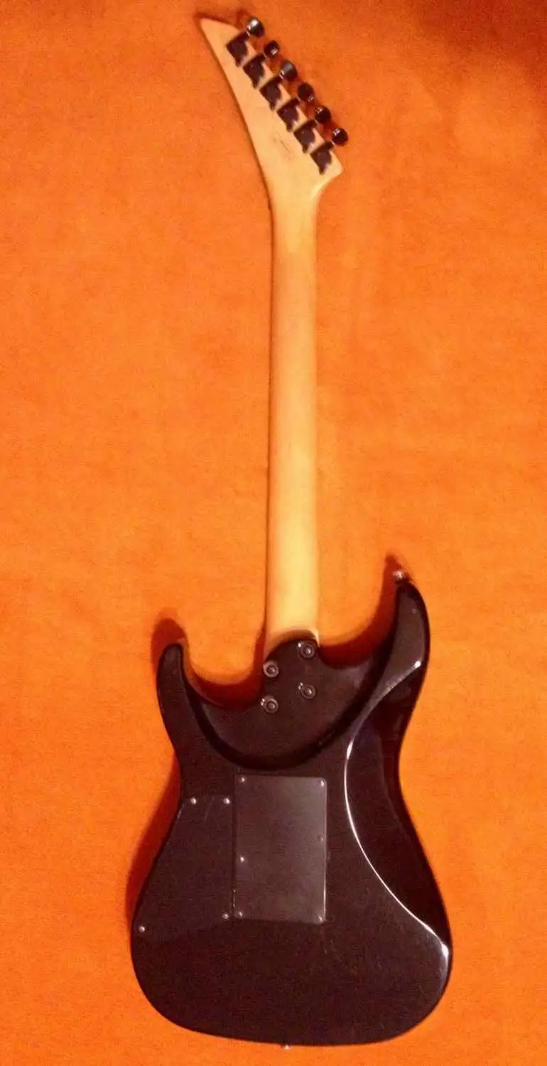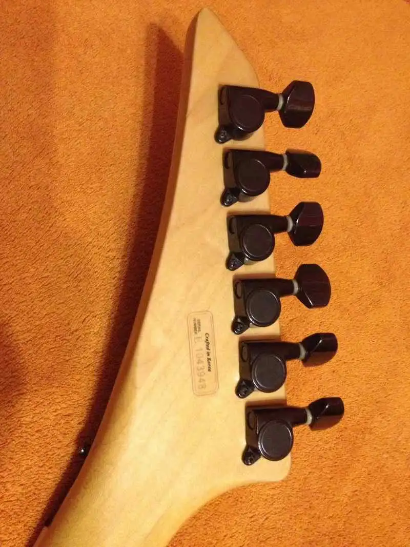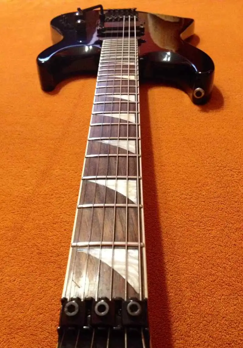 Éger test, juhar nyak, rózsafa fogólap cápafog berakással. A nyak menzúrája 628 mm, bundok kiváló állapotban, 15-től gyárilag mélyítve (scalloped), 3 db egyenként felezhető humbucker (nyaki és közép mini humbi).