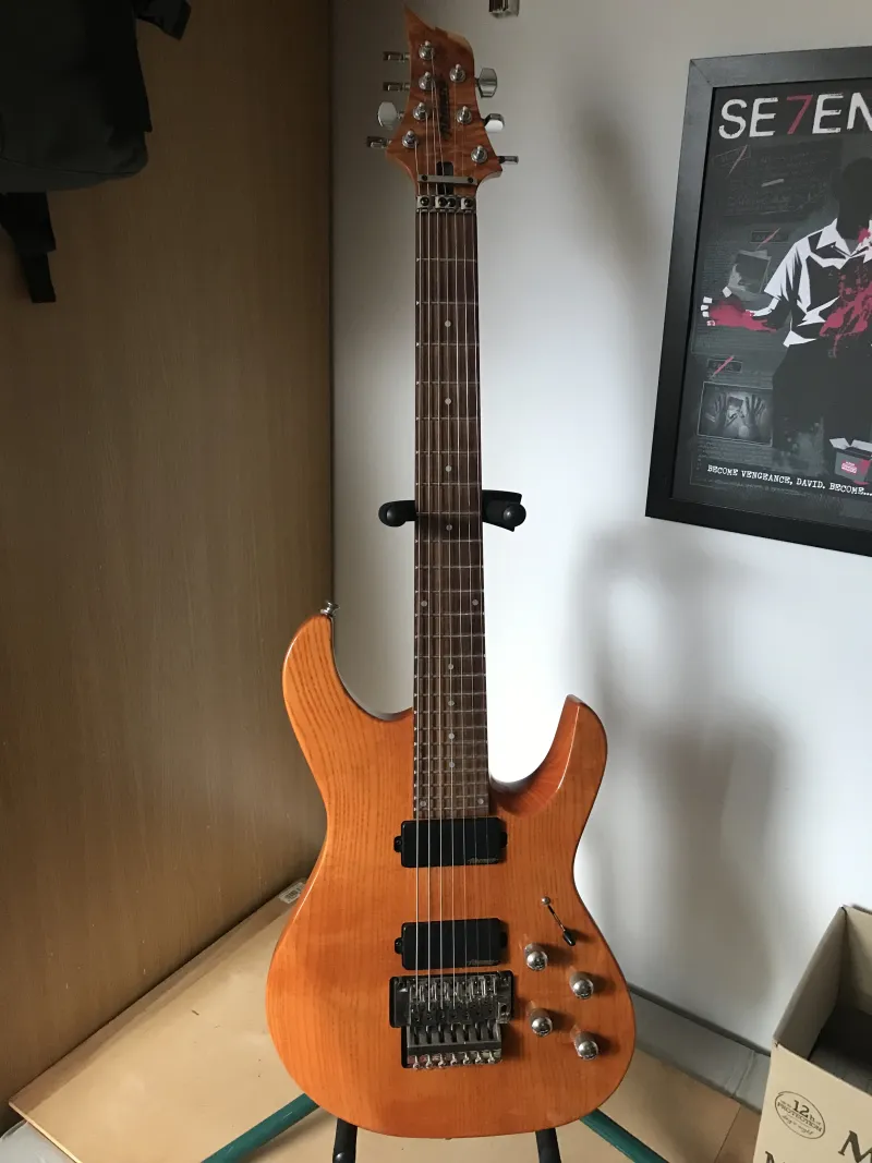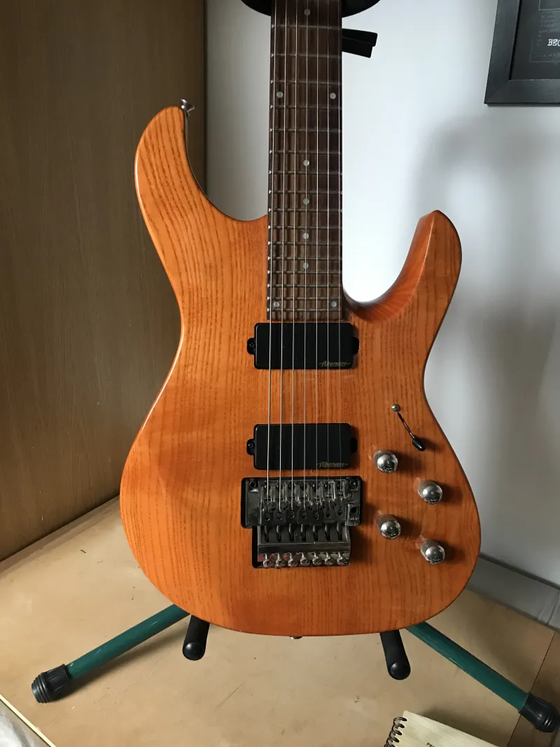 Megfelelő ajánlat esetén eladó ez a Fibenare Classic 7 - frissen beállítva hangszerész által. Két kisebb felületi sérülés található rajta - az egyik a felső szarv hátulján, a másik a fej tetején. A tremolo kar nincs meg (de pótolható). Súlya 4,3 kg. Tok sajnos nincs hozzá. Csere, beszámítás nem aktuális.Szállítás