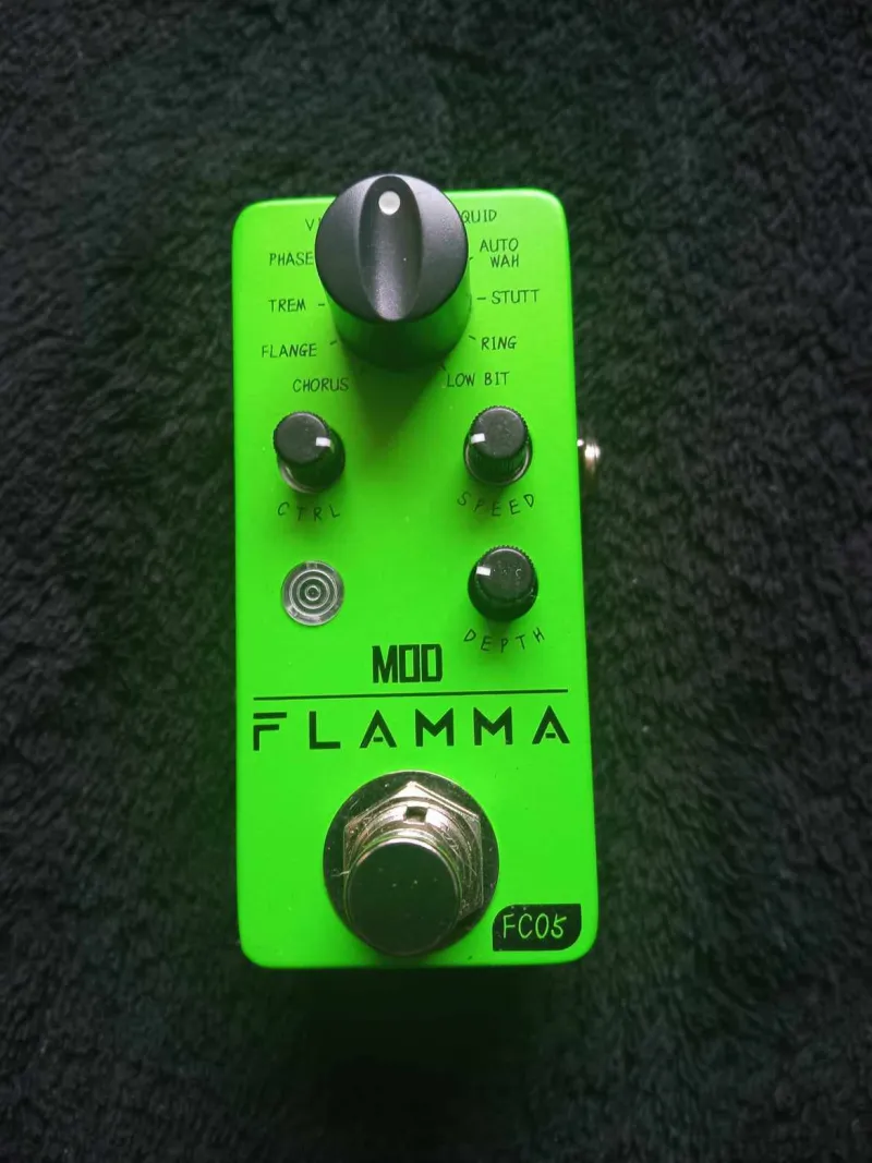 Eladó FLAMMA FC05 Modulation pedálom.11 modulációs effekt közül választhatsz, úgymint Chorus, Flanger, Tremolo, Phaser, Vibrato, Rotary, Liquid, Auto Wah, Stutter, Ring, Low Bit