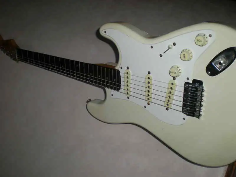 huendeskesEladó Flash Stratocaster, vintage darab a,80-as 90-es évekből, eredeti állapotában. Az idők során a fehérből krém színűvé öregedett, két pontos tremolóval, Gifmen pickupokkal, extra jumbo bundokkal, nagyon kényelmes nyakkal, tömőr fa testtel. A merevítő pálca, a 80-as évekre jellemzően nem a fej felől, hanem a test felől állítható.