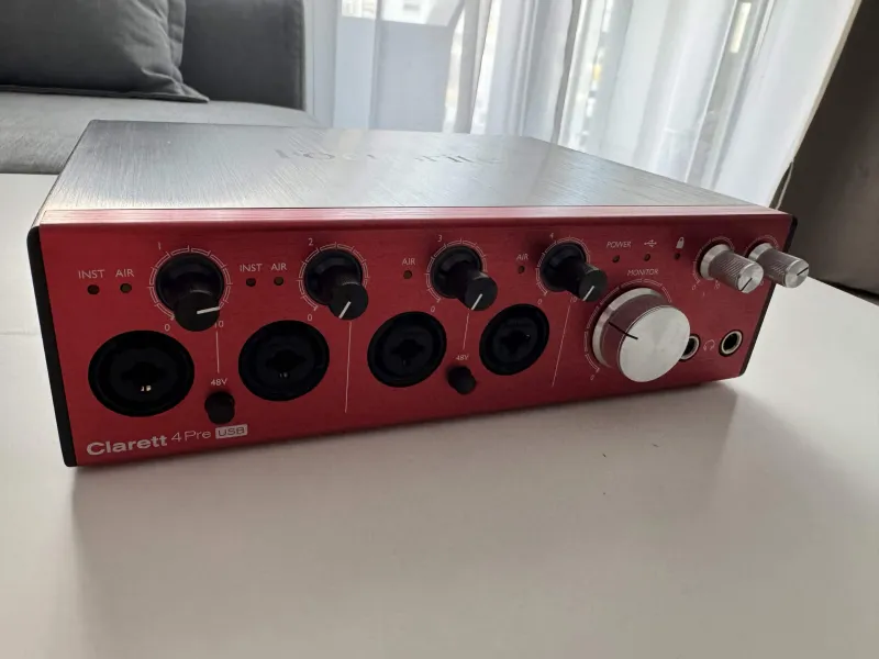 Eladó egy 2020-ban újonnan vásárolt Focusrite Clarett 4Pre (nem a + verzió) amely füstmentes szobában volt tárolva, asztalon használva. Mindene működik hibamenetes, eladás oka hogy a + verziót használom, így ez elmúlt 1 évben a szekrényen ült. A tetején van egy mikrokarc, ezt fotóztam. Rendelkezik
