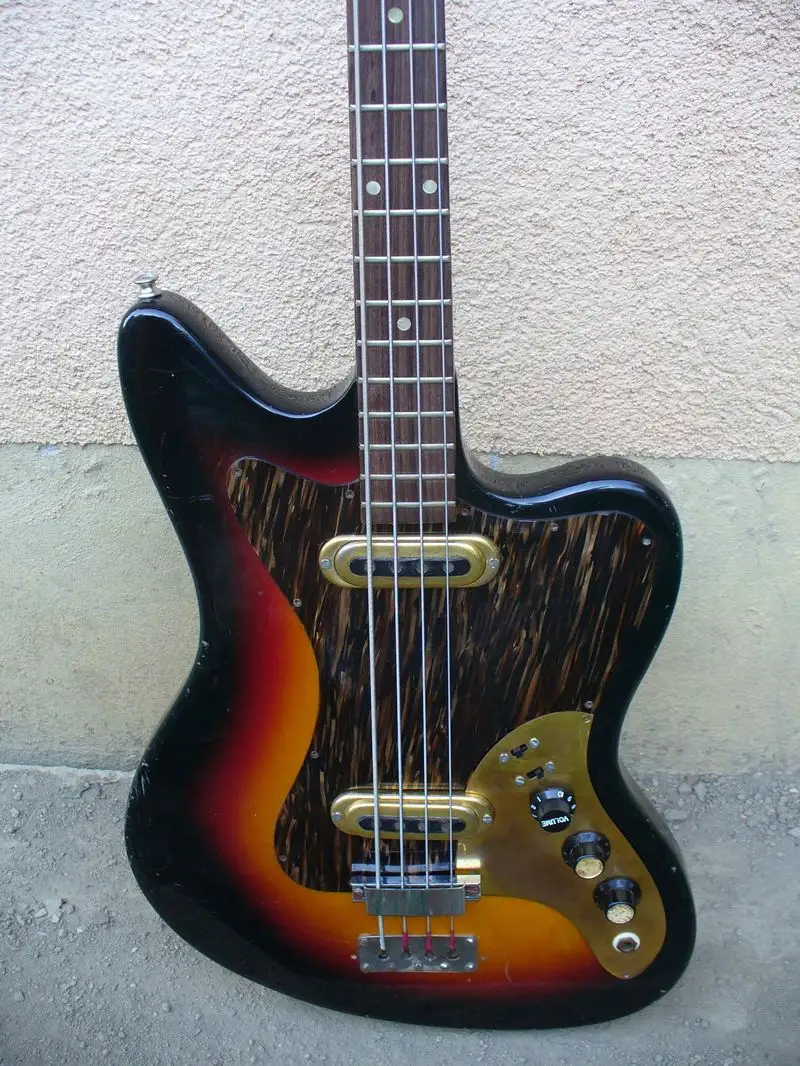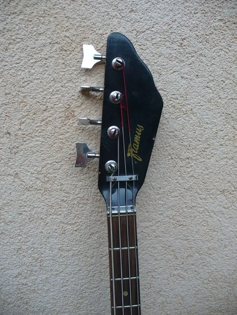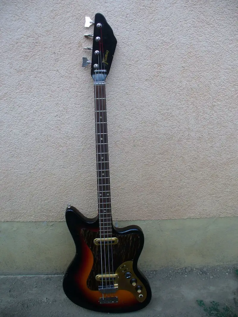 Eladó a képen látható Vintage 1965 Framus 5/165-52GL Strato De Luxe Star Bass Flamed Top/Back gitár.Vékony jól játszható nyak,a bundokon nem látszik kopás csak színbeni eltérés.