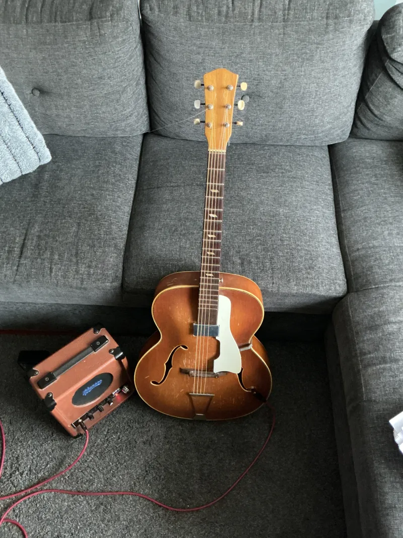 Valószínű Musima,vagy Framus de nem biztos.(Esetleg ha valaki felismeri szívesen venném ha megírná) Kényelmesen játszható.( Kicsit vaskosabb a nyak)Szerintem a sokat megélt,de szép állapot és forma eladja magát annak aki esetleg egy jó vintage gitárt keres.. ;). Előre utalás esetén Gls az árban klasszikus gitár csere érdekelhet. Közkívánatra hangszedő megoldva fúrás módosítás nélkül.Hangszín hangerő poti a koptató alaján csak a forgató gombok látszanak ki.Szállítás