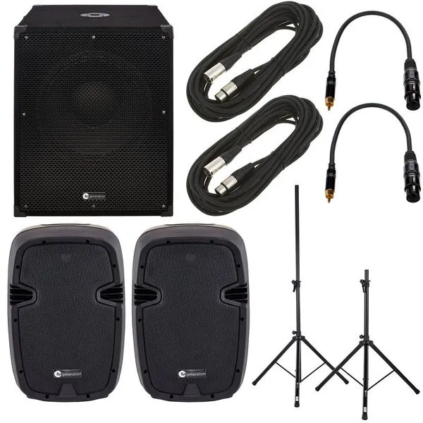 Eladó kiváló állapotú Fun Generation PL 110 A Bundle: 15˝ aktív 250/1000W Sub (40-250 Hz), benne crossover; 2 × PL 110 A aktív 10˝ hangszóró 1˝ magas, 80-18000 Hz, EQ, USB, Bluetooth, 60/320 W, speakon kimenet;A szetthez tartozik 2 állvány és azok hordtáskái, valamint kábelek.