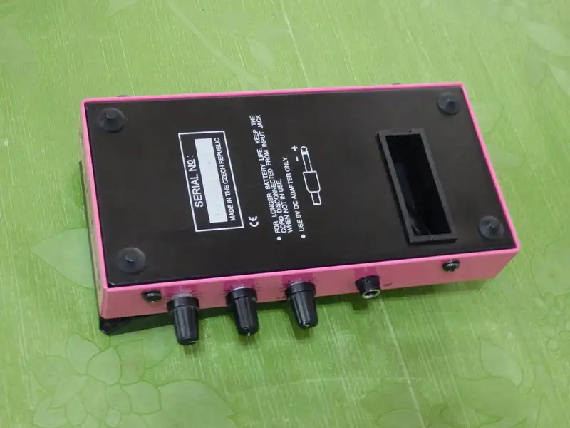 Masszív fém ház, kifogástalanul működik. Az aljáról az elemtartó hiányzik, cserébe a tápcsatlakozó cserélve lett szabványos BOSS méretűre.