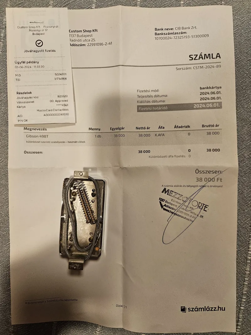 Krómfedeles Gibson 498t eladó. A Mezzoforte Custom Shop-ban vásároltam tavaly, használt termékként. Tökéletesen szól, ahogy kell, 25 cm hosszú kábel, jól tartó csavarmenetek, csavarok + rugók. Adom vele a Mezzofortés számlát is.