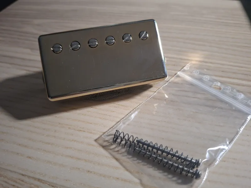 Eladó lett egy Gibson Custombucker hangszedő arany szinben. Kimeneti jel 7.9k kimérve, nekem hid pozicioban volt de ezzel a kimenettel lehet nyugodtan nyakhoz is rakni. Kábelhossz gyári, bőven elég bármilyen poziban. Csavar és rugó is jár hozzá. Posta az árban az egész ország területére, csere köszönöm nem.Uj ára: www.thomann.de