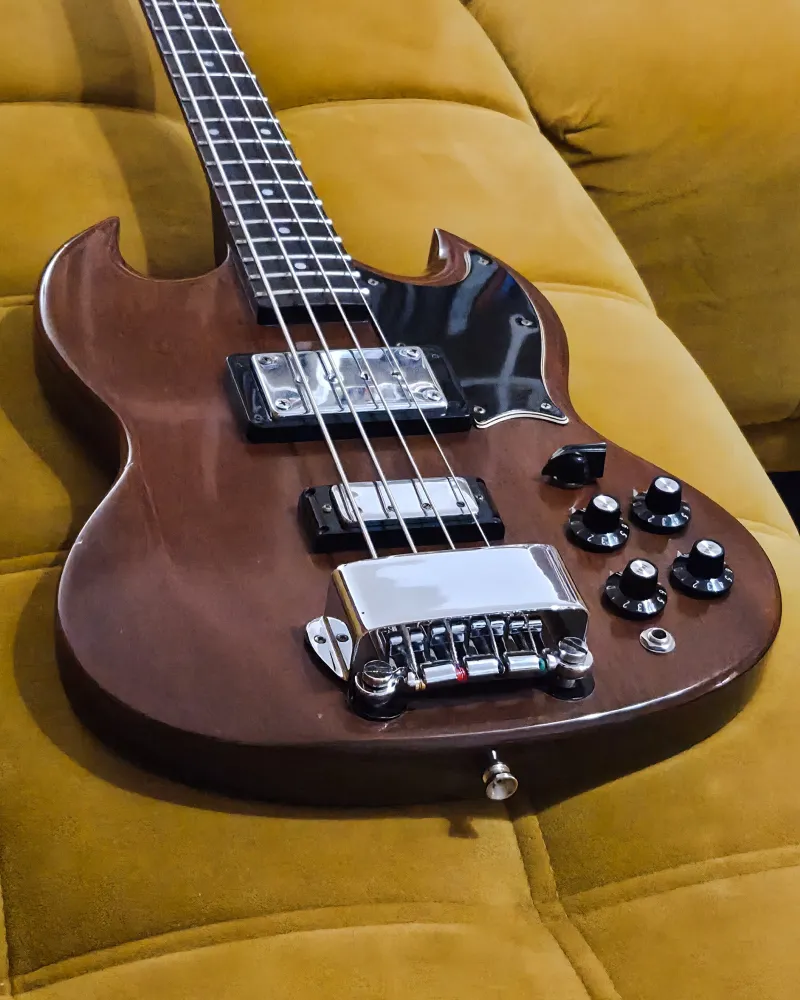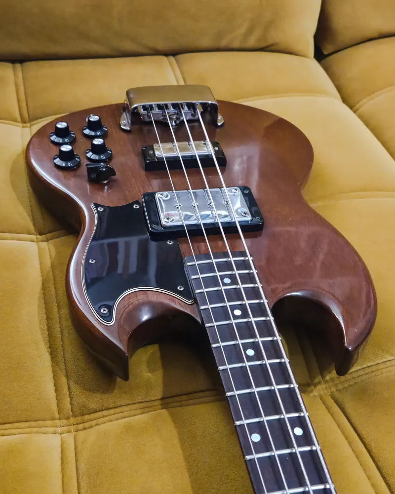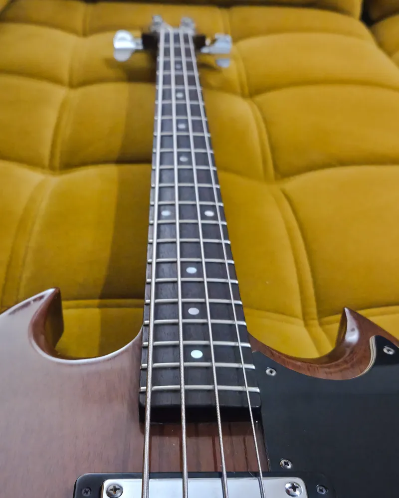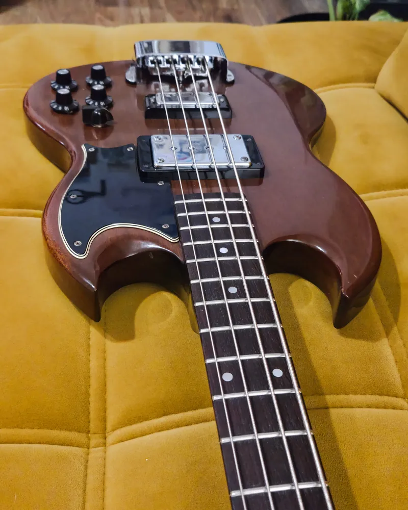 Eladó egy 1974-es Gibson EB-3L, a Gibson ikonikus SG-formájú basszusgitárjának hosszú menzúrás változata.