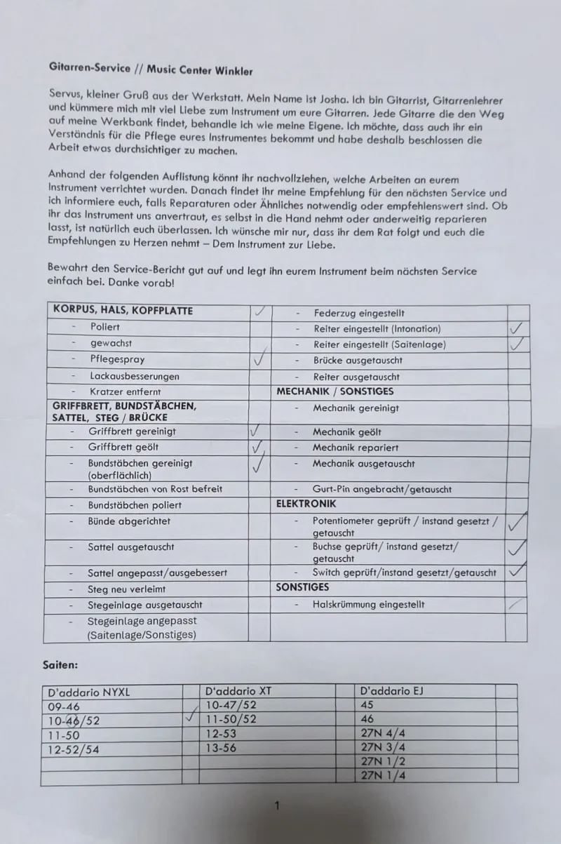 A gitár egy teljeskörű beállításon és tisztításon esett át 01.24-én, az elektronikát is beleértve. Dokumentum a fotók között. A húrnyomás nagyon alacsony lett, álom rajta játszani.