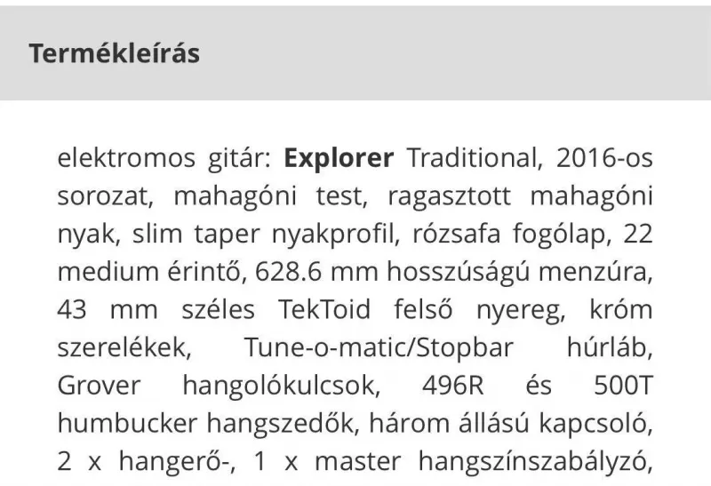 Üdv. eladó Gibson Explorer 2016 gitárom. Karc és leverődés mentes gyönyörű állapotban. Érdeklődni lehetőleg telefonon.Kapcsolódó hangszerteszt