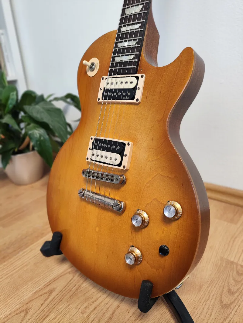 Kihasználatlanság miatt eladó 2018-as Honeyburst színű Les Paulom, gyári vastag puhatokjával, koptatólappal, papírokkal, babafotóval. Szép állapotban, pár apró karcolással, hangszerész által beállítva.Ami a gyári állapoton felüli: