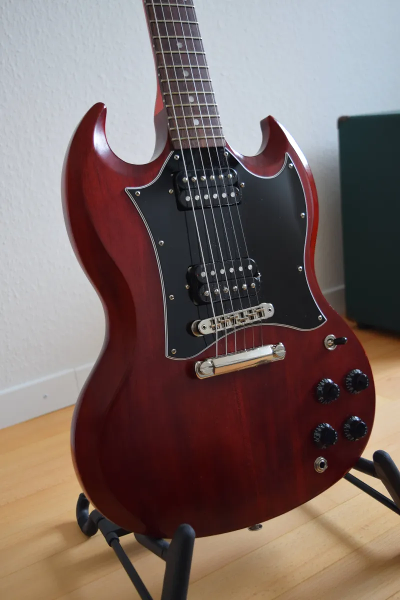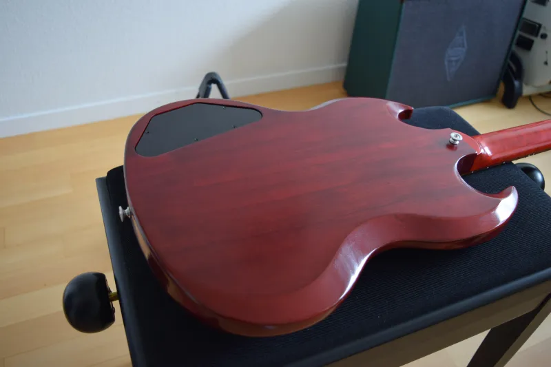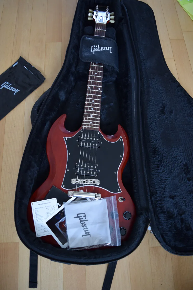 A gitár tökéletesen be van állítva, azonnal játékra kész. Kényelmes, könnyű darab, brutális SG hanggal.