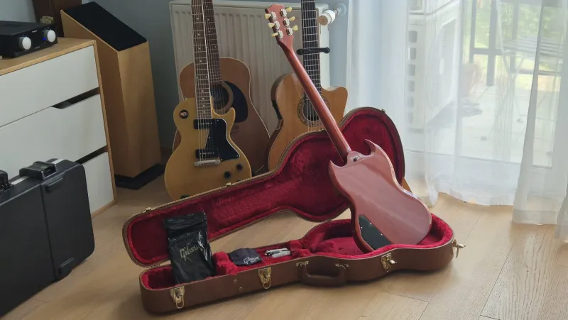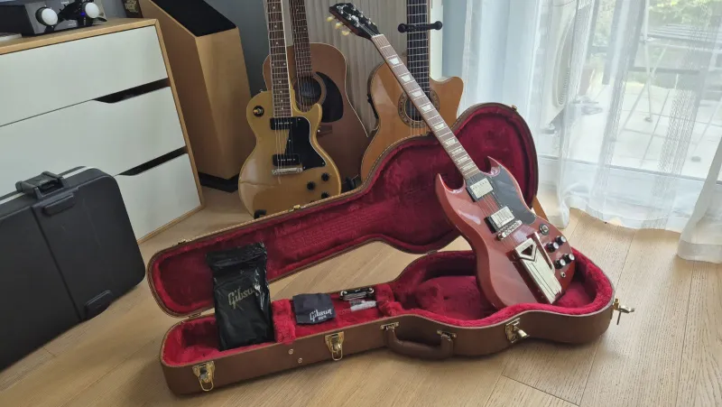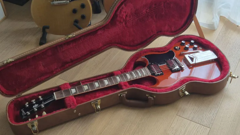 Eladó egy rendkívül ritka Gibson SG `61 Reissue, a legendás Sideways Vibrola tremolórendszerrel. Ez a hangszer a legpontosabb tisztelgés az SG 1961-es születése előtt: minden részletében az aranykort idézi, a látványos oldalirányú tremolókartól a pengeéles hangzásig.