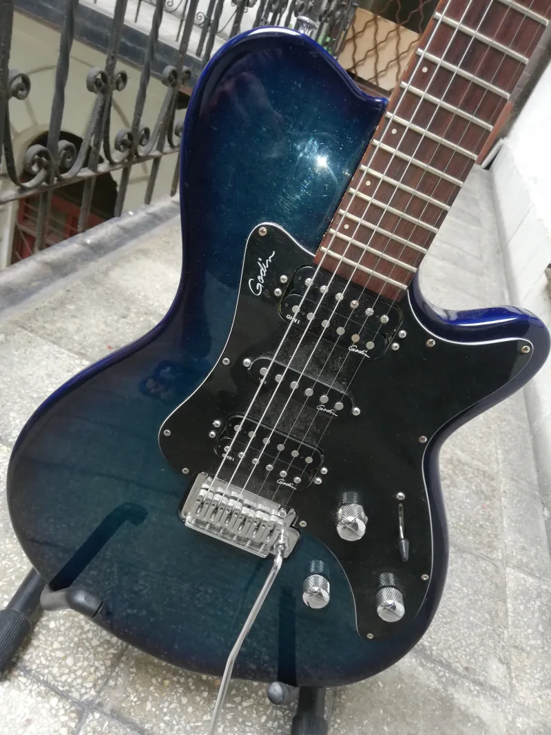 GODIN SOLIDAC Hibrid gitár eladó. A piezo elektronika segítségével meglepően élethű elektro- akusztikus gitár hangot kapunk, miközben a hagyományos H-S-H kiosztású magnetikus pickuprendszer is kiválóan teszi a dolgát, rúg, süvít, simogat. Kiváló állapot, gyönyörű áttetsző (látszik a fa erezete) kék szín, satus kulcsok. Hetedik kerületben kipróbálható, az utolsó szám a telószám végéról nem kell! Csere nem!• Mahogany Neck