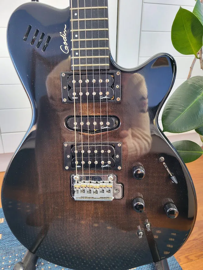 Eladó egy hibátlan állapotú, Godin xtSA Trans Black Flame hybrid gitár. 3 az 1-ben: elektromos-, akusztikus-, gitárszintetizátor hang.Szállítás